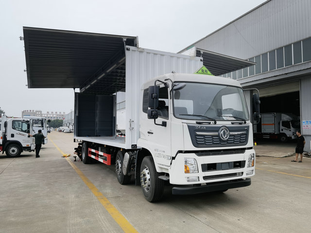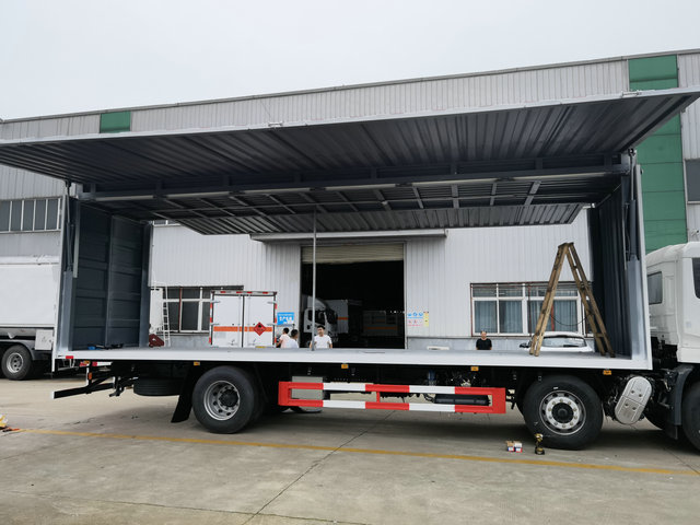 兩側均可以呈翅膀形式的模樣進行展開,左側或者是右側來進行裝卸貨物的話,對于車輛本身的要求是比較高的,這樣的話我們就可以兩側來進行飛翼展開,飛翼的主要支撐是在于里面的液壓缸,所以這個時候我們需要把液壓缸做厚結實一些,才能保障其支撐的力度。