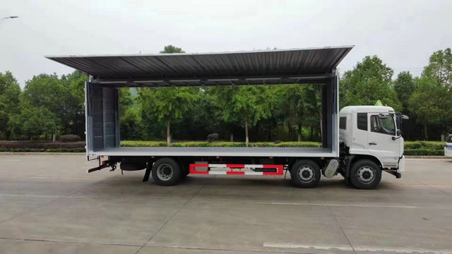 這樣操作的話不僅不會對車型上戶產生影響,而且在實際的工作當中也是更加的有效率,兩側分別是安裝的液壓支撐,可以很長時間的對于飛翼展開有一個保障作用,如6.8-9.6米等貨箱都可以進行使用,除了再運輸危廢這個方面,對于其他的危險物品比如噸桶裝液體,以及腐蝕性物品等都是尤為合適。