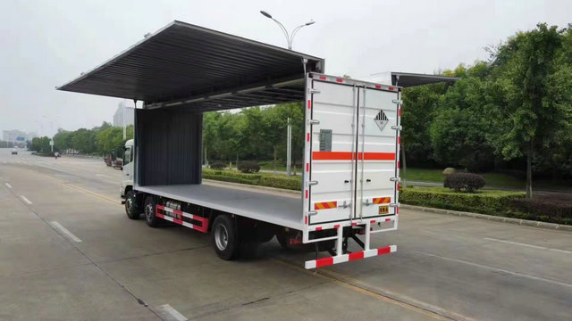 推薦產品近期由于危險品貨車的裝卸問題,很多客戶朋友們會反映有沒有飛翼式貨箱的危險品車輛,這樣在裝卸的時候更加輕松而且又效率的來進行裝卸工作,特別是在進行危險廢物的運輸時候,因為危險廢物都是噸裝形式來運輸裝放的,如果沒有合適的裝卸空間的話,會造成比較大的煩惱,所以今天我們主要介紹的就是關于危險品車輛的飛翼形式貨箱。
