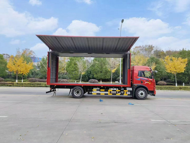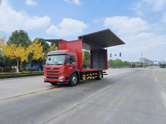 運輸的方式比較多的類型就是這種廂式貨車的類型車輛,如圖我們看到該車呈現一個飛翼展開的形式,在運輸方面是更加的簡單輕松許多的,因為大部分在運輸的時候采用的是噸桶裝的形式車輛,如果是平常的來進行裝卸的話,會很費力。那么這種飛翼展開的車型,不僅可以從兩邊輕松的裝卸工作,而且我們在操作的時候也是格外輕松。