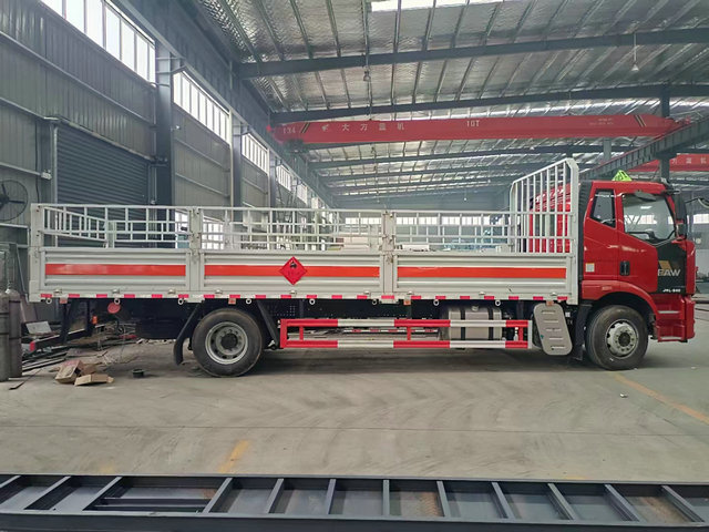 比如還有這種欄板式的,欄板是的車身也可以用來運輸危險廢物的,因為這個類別的車輛平時運輸2類氣體的要稍微多一點,那么用來運輸桶裝的話,是非常足夠的。