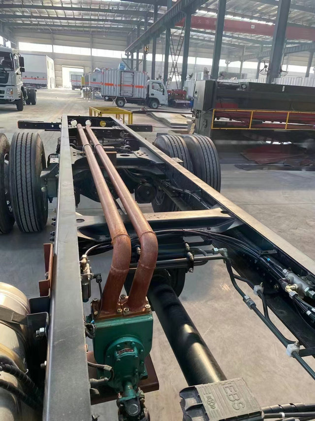 如圖大家可以看到,該車是一款運輸危廢的廂貨車,然后我們可以根據朋友們的要求,在車輛的底盤基礎上面進行真空泵以及管道等的改造,這樣我們在抽油吸油的時候,都得到了很多的方便程度,我們可以通過真空泵的抽吸動力,達到對噸桶裝的廢油進行自動抽吸等,無疑在進一步的對于裝卸工作等有了很大的改善。