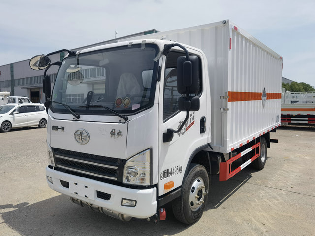 運輸桶裝的易燃液體的話,我們多采用這種密封箱式貨車來進行運輸配送,該車作為密封性質的廂體,可以有效的保障其密封安全以及固定的作用,那么該車采用的是藍牌的車型,既可以作為市區配送的車型,同時的話也可以進行重型載貨運輸的要求,這種要求統一的車型,對于我們配送的話也是很合適的。