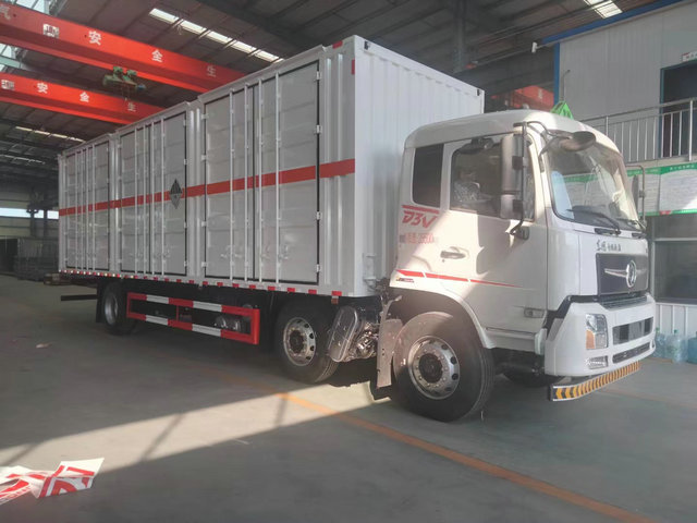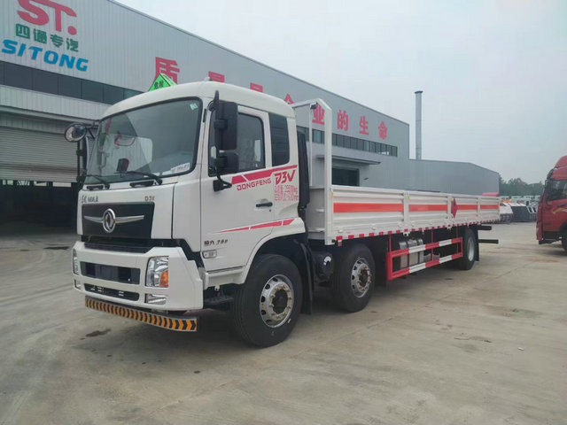 同時大家可以看到該車還可以采用此款欄板式的車型,欄板車型對于我們運輸任何危險物品都是非常合適的,無論是桶裝的貨物還是瓶裝氣體,該車的優勢在于裝卸方便,操作簡單,而且此款車的荷載噸位可以達到16噸這樣的標準,廂體的尺寸可以達到9.6米,無論是尺寸還是噸位都是非常足夠大的。