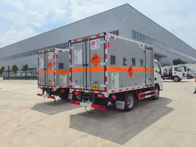 另外的就是這款小型的爆破器材運輸車,該車如大家所看到的這樣,是一款廂體尺寸比較小的車型,廂體尺寸小并不意味著不能運輸大型貨物,而是為了更好的方便進行運輸,在道路狹窄的地方以及隧道等都有利于通行等情況。;