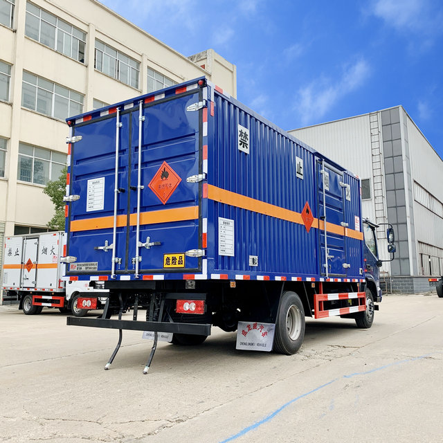 以前的普通貨車因為其結構簡單,已無法滿足現代化對于安全的標準,如今我們看到如圖所展示的危險品車輛,在車輛的底盤以及車廂結構上均有作為對危險品運輸的保障配置,底盤上限速首先是一個大問題,所以我們將限速改為80等嚴格控制因為超速產生的問題,車廂內部均配置有防火防潮的內部配置等,以及用來固定貨物的配置。