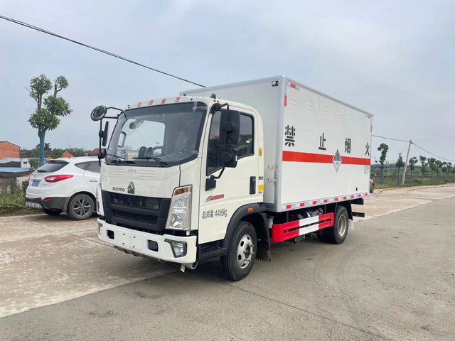 如圖我們所展示的此類就是重汽的危險品車型,該車是一款用于上藍牌的車型標準,在市區配送等是比較合適的,廂體容積為15立方這樣的標準,一般可適合大家運輸3-5噸左右的危險品貨物,特別是在利用到噸桶包裝的危險品貨物的時候,運輸起來更為合適。