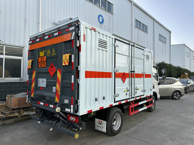 如圖我們所展示的這款廂式貨車的類型,就是運輸危險廢棄物品的車輛,該車是一款具有嚴格密封環境的車型,使得貨物在車里內部可以形成一個很有效以及安全的運輸環境,那么和其他的車型不一樣,我們危險品的車輛的載重噸位需要嚴格的根據其實際車輛的載重噸位等要求來進行有效運輸,比如我們在市區鄉鎮等路段配送的話,所選擇的車型需要適當的小一點的車輛需求等。