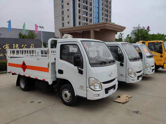 該車輛為小型易燃氣體運輸車,是目前最小的危險品運輸車,總質量在3.5T以下,是非常適合市內運輸,以及短途配送的專用車輛,廂體尺寸:3300X1670X1600(MM),大概可運輸30個液化氣鋼瓶左右。