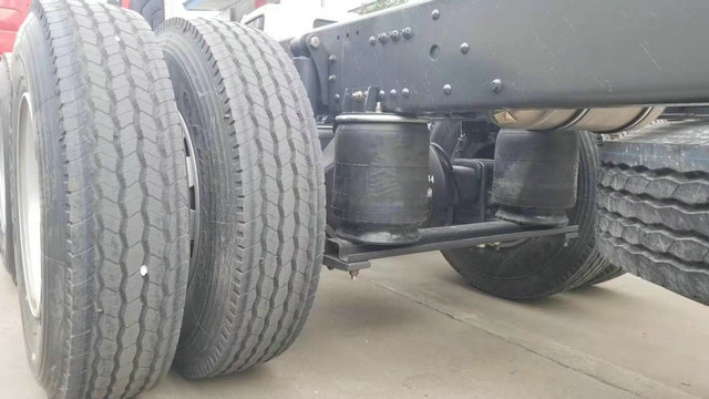 空氣懸掛意思就是后軸,第三軸那里可以進行提升懸浮狀態,在對于超載,貨物壓重的情況下,維持車輛本身的平衡狀態。