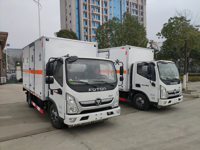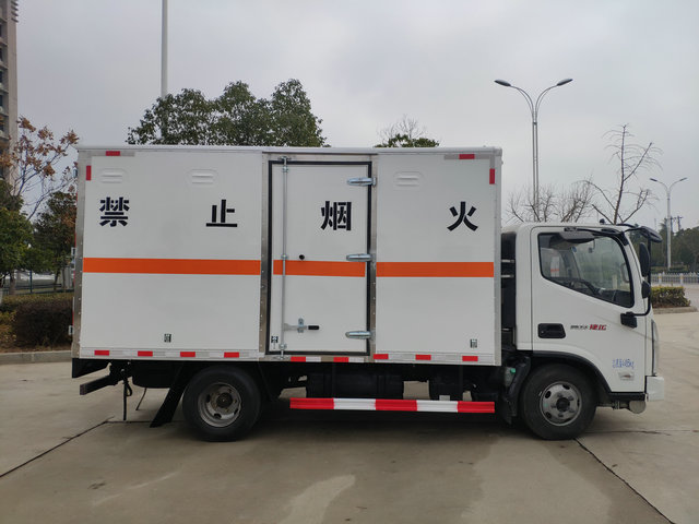 危險品廂體材質:外板采用冷軋板有一次性成型的百葉窗,內飾為導電性能良好的鋁板有透氣孔,內襯為矩形管骨架牢靠穩定,內部填充為透氣防潮阻燃的擠塑板,四種材料經現代工藝復合而成,廂體外部上下鋁合金型材包邊,底板和車廂前下部鋪橡膠皮,后門雙開,右側中部單開門,內部有固定貨物的臥環,車輛外部有靜電帶、滅火器、防火罩,車廂內安裝煙霧報警器和門防盜報警器。