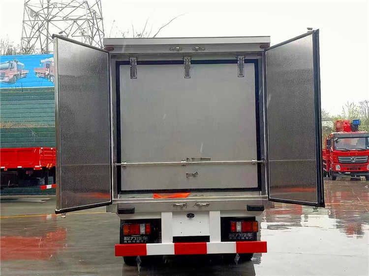 貨箱的內部我們可以看到,里面采用的是不銹鋼材料,普通的貨箱采用的是普通板,這種不銹鋼的材料可以很好的防止細菌的滋生,而且里面配備的有制冷機,可以降低污染物帶來的危害,同時內部還配備的有各種安全措施。