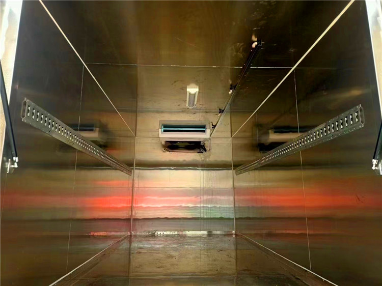 內部的配置設施我們可以清楚的看到,廂板采用的是不銹鋼材質處理,不銹鋼的材質對于細菌是有很好的抑制作用的,頂部我們配備的是消毒紫外線燈,對于醫廢的細菌滋生物可以很好的滅菌效果,同時配備淋水裝置,將遺留下來的細菌,污水等等很好的清洗干凈,以便下次安全運輸。