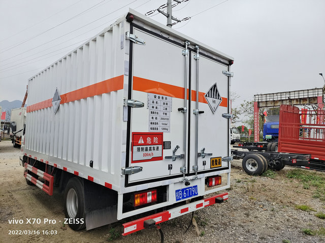 如圖所示我們展示的這款密封箱式貨車就是用于易燃固體危險品進行配送的,該車的車型比較小,適合在市區或者是鄉鎮等地方進行配送,貨物的噸位大概在1-2噸的樣子無疑用該車運輸是非常合適的選擇。