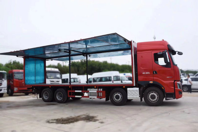 如圖大家所看到的此款車型,就是用于危險品貨物運輸?shù)娘w翼車型,該車可以很好的供大家對于長途運輸貨物的裝卸要求,進行一個飛翼式展開的貨箱選擇,可廣泛的面對各種桶裝式的危險品進行運輸配送,而且有很大效率的提高了我們進行裝卸貨物的時間和方便效率。