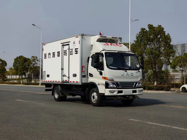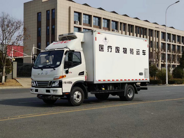 通過貨廂內部的制冷劑降低溫度,達到對于細菌微生物的消滅效果,那么大家在運輸的過程當中就可以非常放心,其次在內部還會有消滅細菌的紫外線燈,通過系列的調整設備,達到對于運輸過程當中的醫療廢物保障效果。