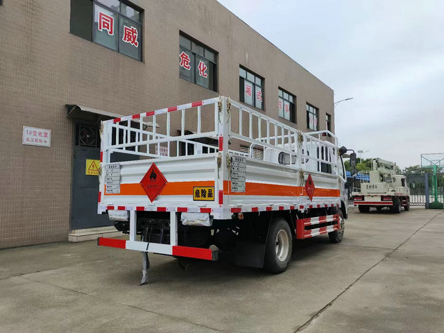 此款車型如大家所看到的,就是運輸腐蝕性物品的車輛,是采用的密封箱式貨車的類型來進行運輸的,這樣的對于固態以及噸桶所包裝好的危險物品有一個很好的安全保障作用,那么在運輸這個類別物品的時候,因為其具有一定的腐蝕性,所以要求我們在貨廂的內部需要做好防腐等要求,才能達到安全的作用。