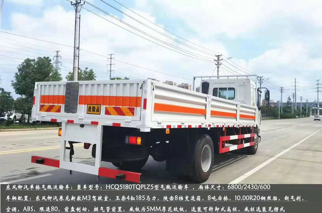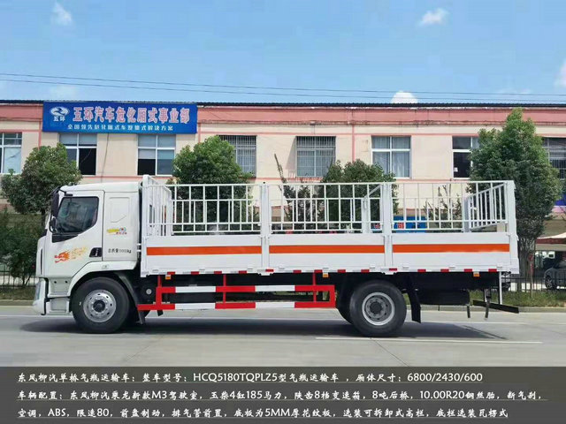 這款車是柳汽乘龍M3新款的氣瓶運輸車,該車為欄板式,專用于運輸配送氧氣瓶,杜瓦瓶等氣瓶的運輸,欄板尺寸是:6800X2430X600(MM)。核載:10