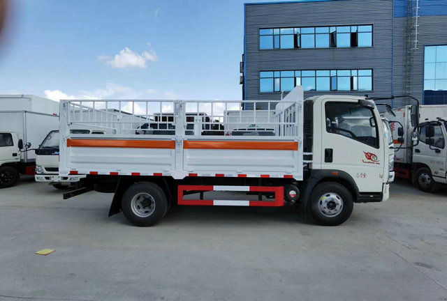 配置:1880新款駕駛室、云內115馬力、萬里揚6檔、750R16鋼絲胎、帶中控、電窗!ABS,限速80,前盤制動,排氣管前置,危險品專業底盤! 上裝配置:高欄板,欄板高度600mm.高欄高度1200mm。邊板瓦楞板,底板為3mm厚花紋板,隨車配有靜電帶,滅火器,危險品三角頂燈。