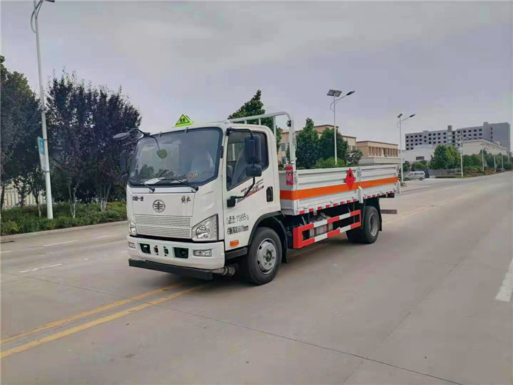 采用解放平頭汽車(chē),濰柴160馬力,國(guó)六排放標(biāo)準(zhǔn),245真空胎,帶ABS,空調(diào)+電動(dòng)門(mén)窗+中控鎖,行車(chē)記錄儀,帶靜電拖地帶,爆胎應(yīng)急安全裝置,軸距:3900。
