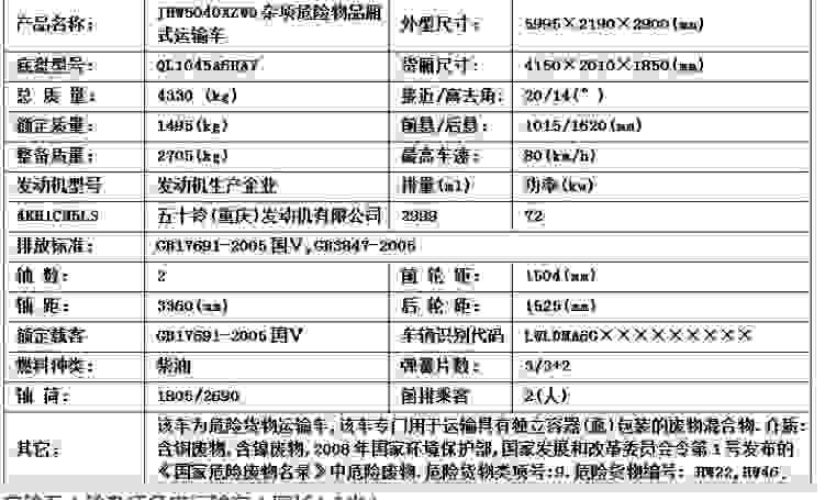 這款為車輛的生產(chǎn)公告,我們所做所生產(chǎn)的各種危險(xiǎn)廢物運(yùn)輸車也是按照公告要求生產(chǎn)的,如圖,可以明顯的看到,規(guī)定著車輛的尺寸,發(fā)動(dòng)機(jī),以及備注欄目里面的運(yùn)輸介質(zhì)等相關(guān)介紹,所以該車上的手續(xù)等等都是嚴(yán)格危險(xiǎn)品車的手續(xù),所以運(yùn)輸各種廢機(jī)油等危險(xiǎn)廢物,所以用到這種專用車輛。