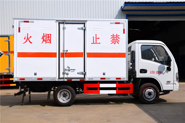 廂體內(nèi)帶捆綁貨物的臥環(huán)或固定貨物的防撞護板,車載危險品感應(yīng)報警器,防盜報警器,前置防撞靜電膠皮,配滅火器,防火罩和國標(biāo)危險品警示燈,危險標(biāo)示牌。三個菱形標(biāo)識牌,一圈橙色反光帶,一個安全告知標(biāo)牌,帶接地導(dǎo)靜電膠帶,鍍鋅鉸鏈。前后保險杠安裝防撞橡膠塊等。車廂可開側(cè)門,方便裝卸貨物;也可加開隔倉,方便運輸。