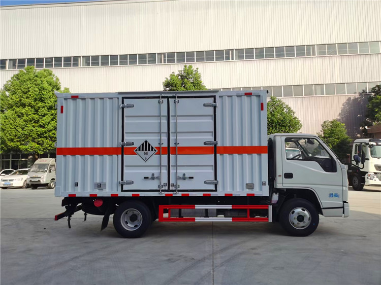 如圖所示,就是我們展示的此款江鈴車型,主要可用于運輸2類,3類或者9類等不同的危險物品,這樣的車型可以很全方面的滿足用戶朋友們對于運輸貨物的標準,該車廂長為4米2,藍牌車型,可用于進行市內城區的配送,在鄉鎮方面,還是說在小區區域道路上,該車對于承載貨物以及動力都是非常合適的。