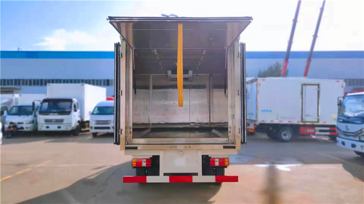針對于車廂內部的設計大家可以看一下,后門為雙開門式結構,可以很好的將貨物封閉在一個密封安全環境下來進行轉運配送。避免接觸到任何其他的不必要性的感染物件。