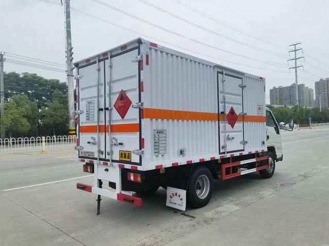 江鈴順達爆破器材運輸車底盤配置:廂體長寬高:4150X1960X1800(MM),核載噸位:1.2噸,上藍牌,車輛外部采用專用冷軋鋼板,內部采用鋁板,夾層復合阻燃材料,嚴格控制防火阻燃性,車廂內以及邊部安裝的有煙霧報警器以及固定裝置,廂體貼‘爆破器材’危險品標識。