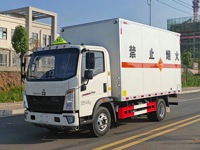 重汽豪沃爆破器材運輸車底盤配置:廂體長寬高:4100X2100X2000(MM),核載噸位:750(KG),用冷軋鋼板,內部采用鋁板,夾層復合阻燃材料,嚴格控制防火阻燃性,車廂內以及邊部安裝的有煙霧報警器以及固定裝置,廂體貼‘爆破器材’危險品標識。