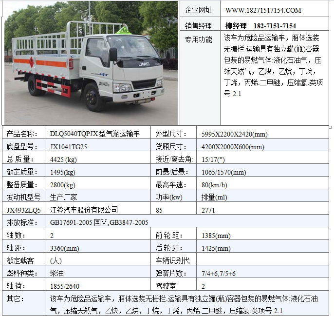 運輸簡介:該車為二類氣瓶運輸車:運輸氧氣瓶,煤氣罐,氫氣瓶以及各種工業氣體等。