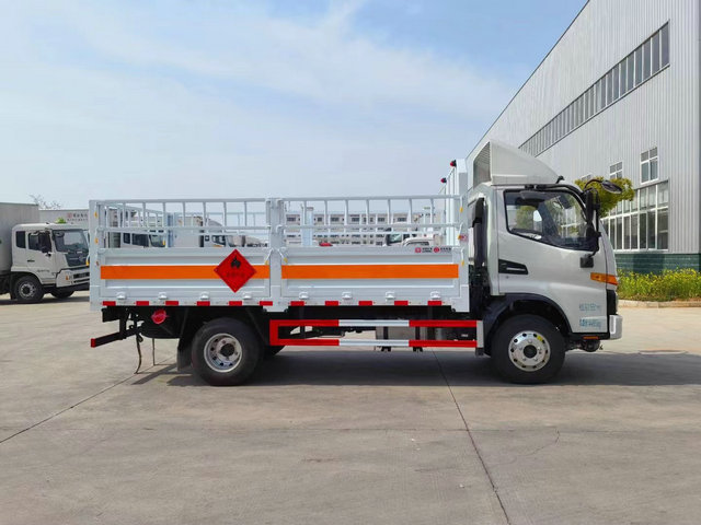 整車運輸介質:該車運輸具有獨立容器(瓶)包裝的易燃氣體:GB 12268-2012《危險貨物品名表》第2.1項的液化石油氣,壓縮天然氣,乙炔,乙烷,丙烷,丁烷,氬氣,異丁烷,丁烯,甲烷,丙烯,環丁烷,丙二烯,二甲醚,甲乙醚,打火機或打火機加油器(裝有易燃氣體),氫;2.2項中的壓縮氧氣,壓縮氮氣,二氧化碳氣瓶,危險品標志牌選掛2.1類易燃氣體警示牌或掛2.2類非易燃無毒氣體警示牌.