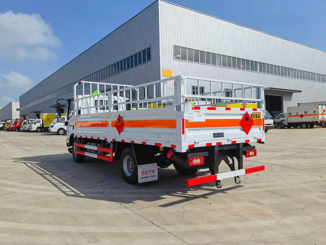 奧鈴欄板氣瓶運輸車(國六),關于危險品的嚴格配置,缺一不可,我公司針對于危險品運輸車的安全性。