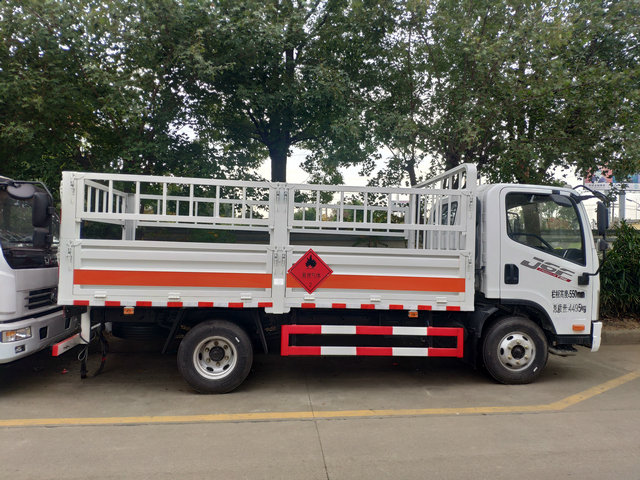 整車運輸介質:該車運輸具有獨立容器(瓶)包裝的易燃氣體:GB 12268-2012《危險貨物品名表》第2.1項的液化石油氣,壓縮天然氣,乙炔,乙烷,丙烷,丁烷,氬氣,異丁烷,丁烯,甲烷,丙烯,環丁烷,丙二烯,二甲醚,甲乙醚,打火機或打火機加油器(裝有易燃氣體),氫;2.2項中的壓縮氧氣,壓縮氮氣,二氧化碳氣瓶,危險品標志牌選掛2.1類易燃氣體警示牌或掛2.2類非易燃無毒氣體警示牌.