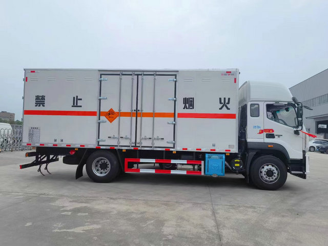 福田歐航易燃液體運輸車上裝配置:廂體長寬高:6800X2400X2300(MM),荷載噸位:10.5噸,車輛外部采用專用冷軋鋼板,內部采用鋁板,夾層復合阻燃材料,嚴格控制防火阻燃性,車廂內以及邊部安裝的有煙霧報警器以及固定裝置,廂體貼‘易燃液體’危險品標識。