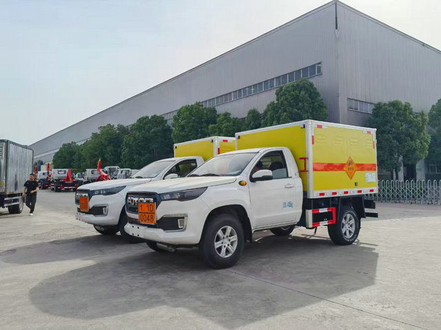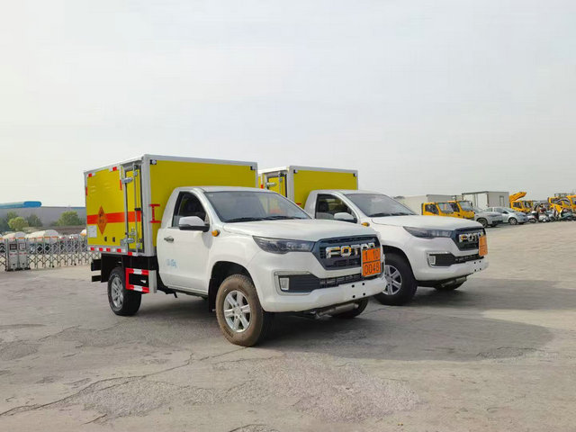 皮卡四驅易燃液體運輸車上裝配置:廂體長寬高:2300X1700X1200(MM),車輛外部采用專用冷軋鋼板,內部采用鋁板,夾層復合阻燃材料,嚴格控制防火阻燃性,車廂內以及邊部安裝的有煙霧報警器以及固定裝置,廂體貼‘易燃液體’危險品標識。