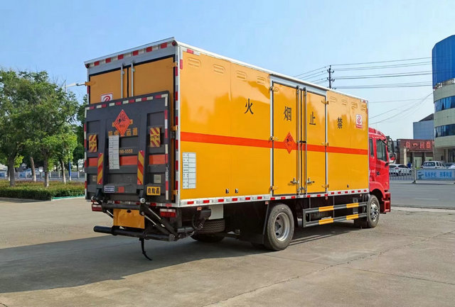 江淮格爾發易燃液體運輸車上裝配置:廂體長寬高:6800×2400×2600(MM),荷載噸位:10600(KG),車輛外部采用專用冷軋鋼板,內部采用鋁板,夾層復合阻燃材料,嚴格控制防火阻燃性,車廂內以及邊部安裝的有煙霧報警器以及固定裝置,廂體貼‘易燃液體’危險品標識。