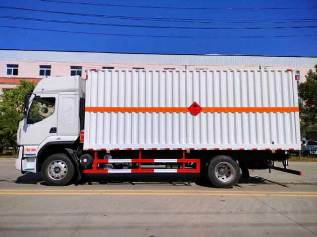 柳汽乘龍易燃液體運輸車上裝配置:廂體長寬高:6600X2420X2200(MM),核載噸位:10.5噸,車輛外部采用專用冷軋鋼板,內(nèi)部采用鋁板,夾層復(fù)合阻燃材料,嚴(yán)格控制防火阻燃性,車廂內(nèi)以及邊部安裝的有煙霧報警器以及固定裝置,廂體貼‘易燃液體’危險品標(biāo)識。