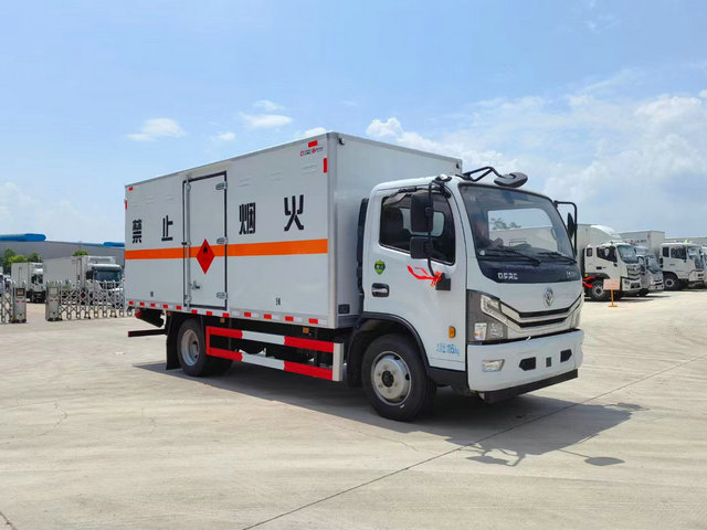 東風凱普特易燃液體運輸車上裝配置:廂體長寬高:5150X2300X2200(MM),核載噸位:7.1噸,車輛外部采用專用冷軋鋼板,內部采用鋁板,夾層復合阻燃材料,嚴格控制防火阻燃性,車廂內以及邊部安裝的有煙霧報警器以及固定裝置,廂體貼‘易燃液體’危險品標識。