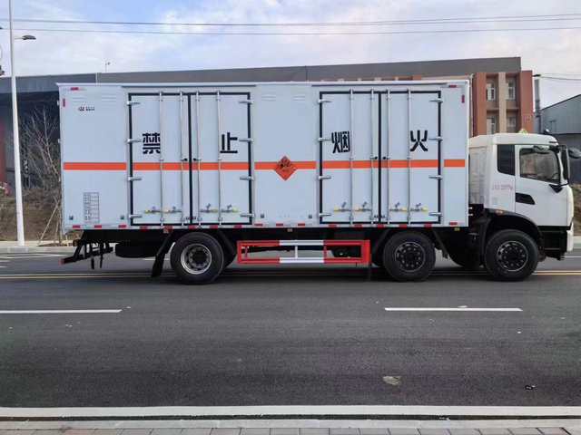 東風天錦易燃液體運輸車上裝配置:廂體長寬高:9600X2400X2200(MM),荷載噸位:15噸,車輛外部采用專用冷軋鋼板,內部采用鋁板,夾層復合阻燃材料,嚴格控制防火阻燃性,車廂內以及邊部安裝的有煙霧報警器以及固定裝置,廂體貼‘易燃液體’危險品標識。