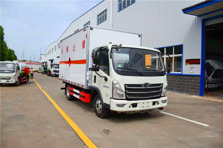 福田時代易燃液體運輸車上裝配置:廂體長寬高:4120X2150X2030(MM),車輛外部采用專用冷軋鋼板,內部采用鋁板,夾層復合阻燃材料,嚴格控制防火阻燃性,車廂內以及邊部安裝的有煙霧報警器以及固定裝置,廂體貼‘易燃液體’危險品標識。