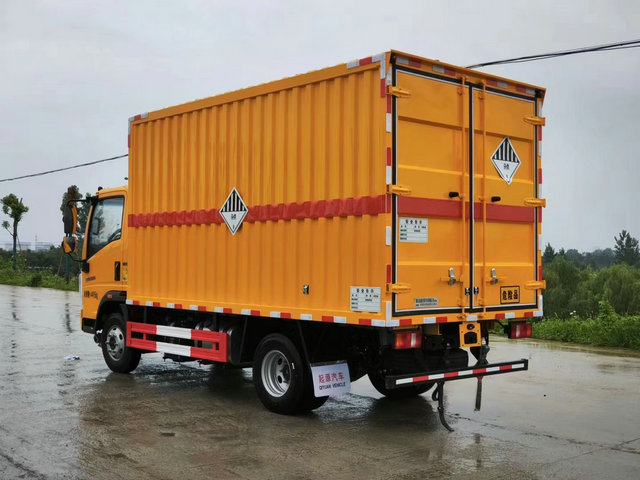 重汽豪沃易燃固體廂式運輸車上裝配置:廂體長寬高:4100X2000X1850(MM),荷載噸位:800(KG),車輛外部采用專用冷軋鋼板,內部采用鋁板,夾層復合阻燃材料,嚴格控制防火阻燃性,車廂內以及邊部安裝的有煙霧報警器以及固定裝置,廂體貼‘易燃固體’危險品標識。