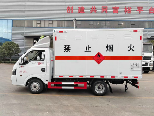 東風氧化性物品運輸車上裝配置:廂體長寬高:3300X1760X1700(MM),荷載噸位:1.5噸,車輛外部采用專用冷軋鋼板,內部采用鋁板,夾層復合阻燃材料,嚴格控制防火阻燃性,車廂內以及邊部安裝的有煙霧報警器以及固定裝置,廂體貼‘易燃液體’危險品標識。