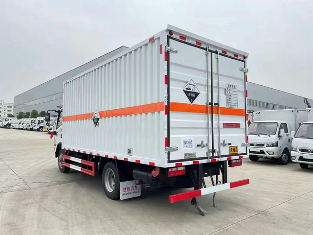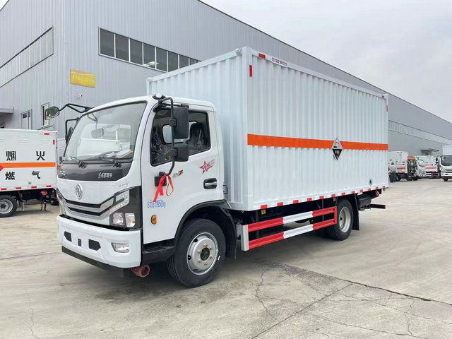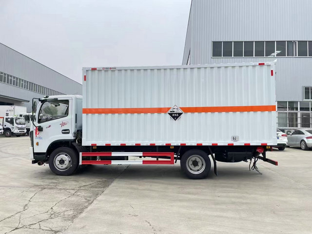 東風多利卡腐蝕性物品廂式運輸車上裝配置:廂體長寬高:5100X2300X2200(MM),荷載噸位:7.2噸,車輛外部采用專用冷軋鋼板,內部采用鋁板,夾層復合阻燃材料,嚴格控制防火阻燃性,車廂內以及邊部安裝的有煙霧報警器以及固定裝置,廂體貼‘腐蝕品’危險品標識。