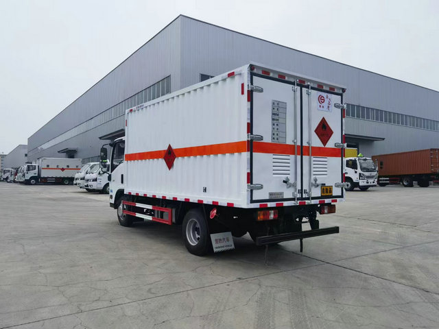 五十鈴危險廢物廂式運輸車底盤配置:采用新款寬體駕駛室,氣剎,五十鈴126馬力,五檔變速箱,7.00R16鋼絲胎。