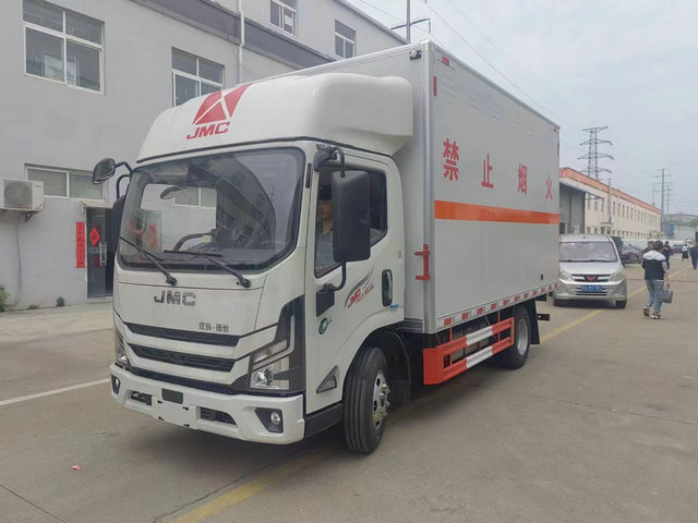 江鈴凱運危險廢物廂式運輸車底盤配置:采用新款寬體駕駛室,氣剎,江鈴130馬力,五檔變速箱,7.00R16鋼絲胎。