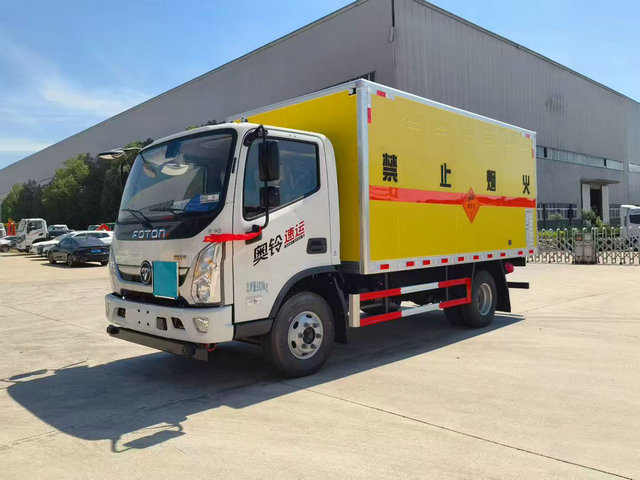 福田奧鈴危險廢物廂式運輸車底盤配置:采用新款寬體駕駛室,氣剎,濰柴220馬力,八檔變速箱,7.00R16鋼絲胎。