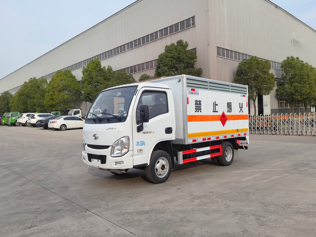 躍進危險品廢物輸車上裝配置:廂體長寬高:3350X1750X1740(MM),核載噸位:0.74噸,車輛外部采用專用冷軋鋼板,內部采用鋁板,夾層復合阻燃材料,嚴格控制防火阻燃性,車廂內以及邊部安裝的有煙霧報警器以及固定裝置,廂體貼‘雜項’危險品標識。